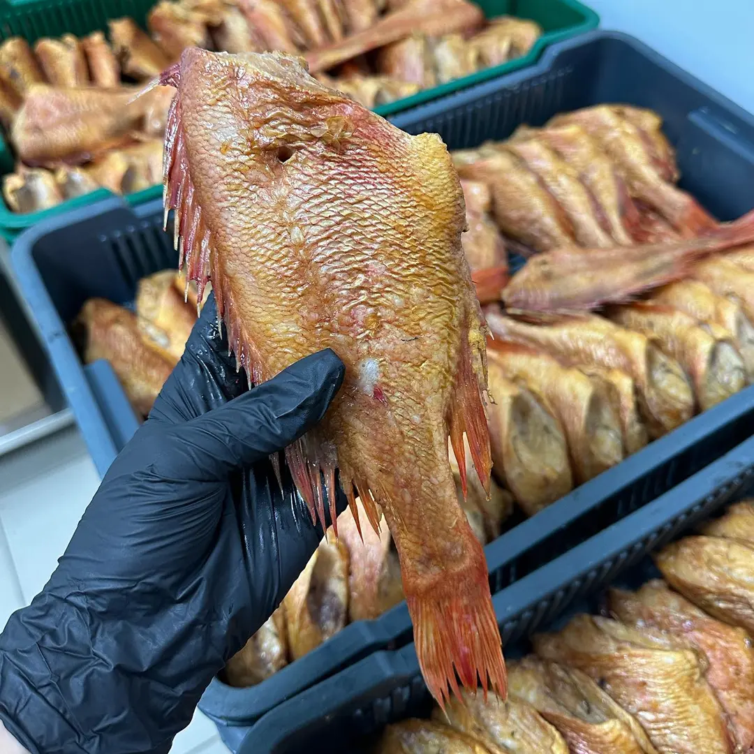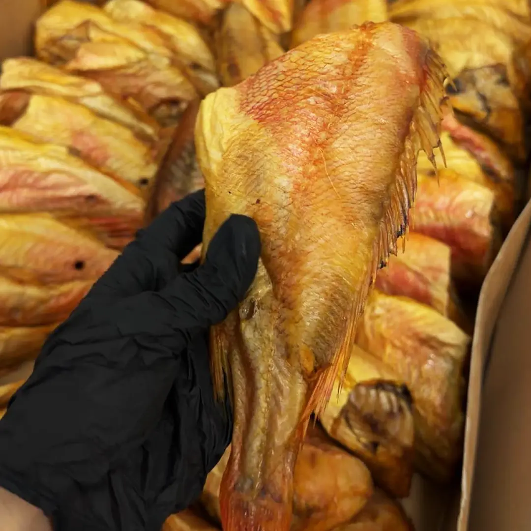 Червоний морський окунь холодного копчення (копчення натуральне в тирсі дуба і вільхи) без голови, патраний