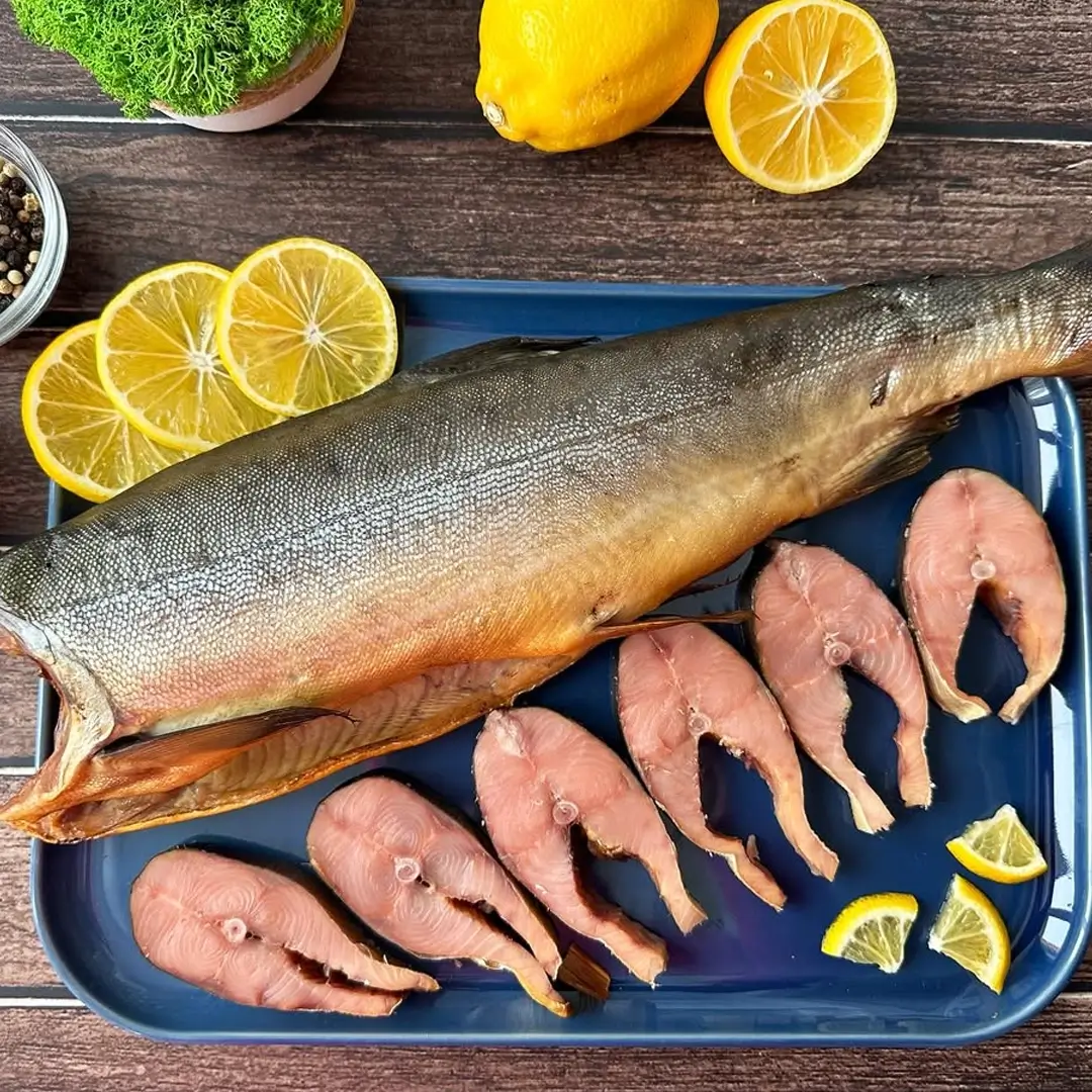 🐟 Горбуша холодного копчення (копчення натуральне в тирсі дуба і вільхи) без голови, патрана.