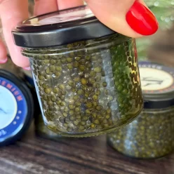 Чорна осетрова ікра Amur Caviar Company — це ікра природного гібриду амурського осетра та калуги, прісноводної риби роду білуг.